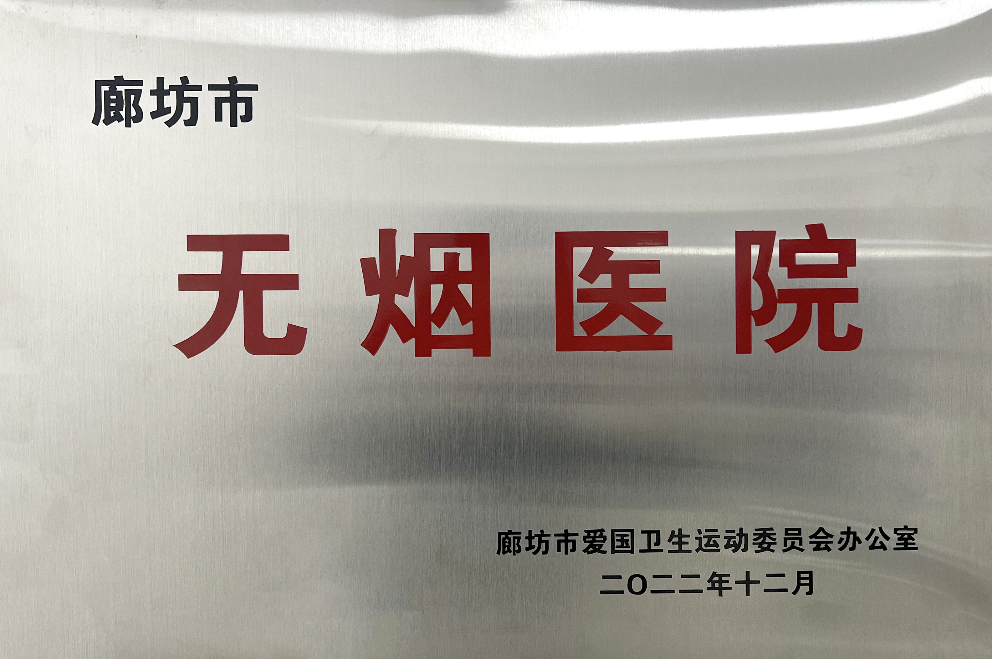 由廊坊市愛(ài)國(guó)衛(wèi)生運(yùn)動(dòng)委員會(huì)辦公室為河北燕達(dá)陸道培醫(yī)院頒發(fā)“無(wú)煙醫(yī)院”。