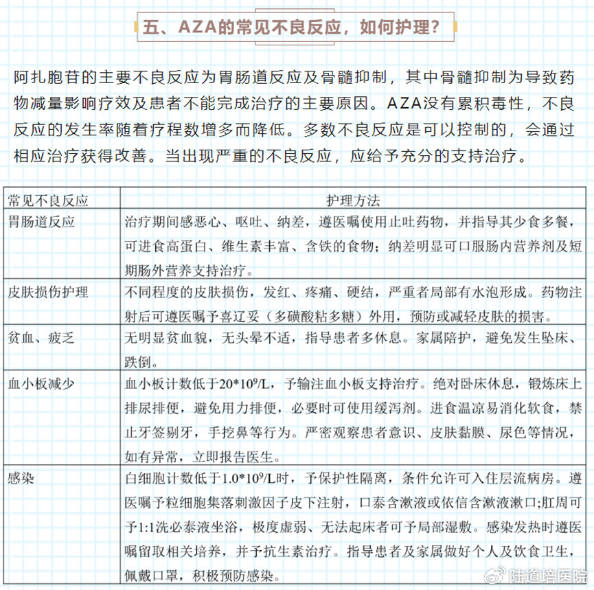 六、使用阿扎胞苷后常見的不良反應及相應的護理方法?