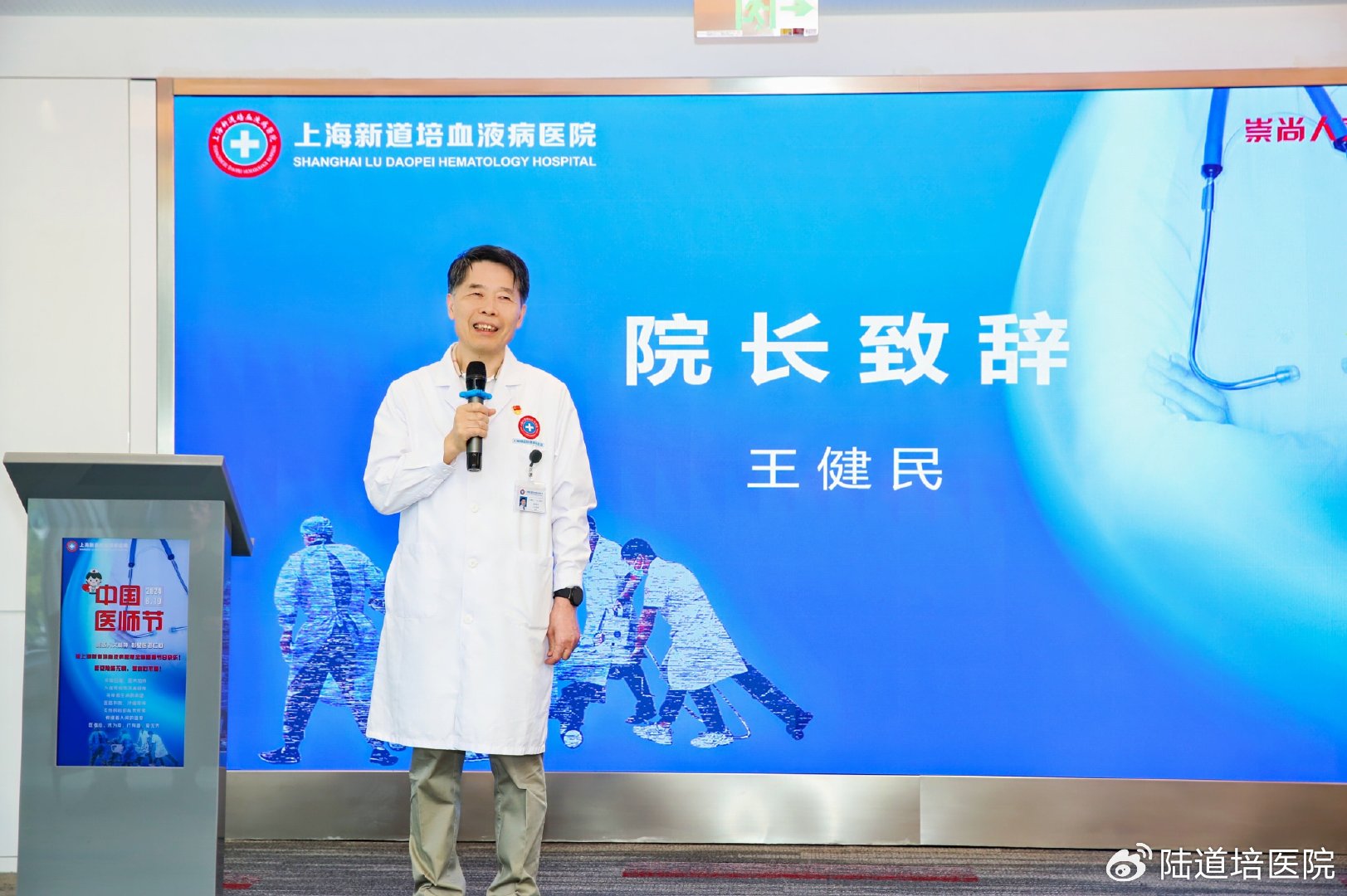 8月19日,第七個(gè)中國(guó)醫(yī)師節(jié),為激勵(lì)我院衛(wèi)生與健康工作者大力弘揚(yáng)“敬佑生命、救死扶傷、甘于奉獻(xiàn)、大愛(ài)無(wú)疆”的崇高精神,上海新道培血液病醫(yī)院在學(xué)術(shù)報(bào)告廳組織開(kāi)展了慶祝醫(yī)師節(jié)活動(dòng),旨在弘揚(yáng)醫(yī)師精神,凝聚力量,共謀上海新道培血液病醫(yī)院建設(shè)新篇章。上海新道培血液病醫(yī)院總經(jīng)理毛升東、執(zhí)行董事陸露茜、醫(yī)療執(zhí)行院長(zhǎng)王健民、運(yùn)營(yíng)院長(zhǎng)劉金宏、醫(yī)療顧問(wèn)陳芳源以及上海新道培血液病醫(yī)院全體醫(yī)技人員、護(hù)士長(zhǎng)等出席了此次活動(dòng),辦公室主任劉嘉主持。